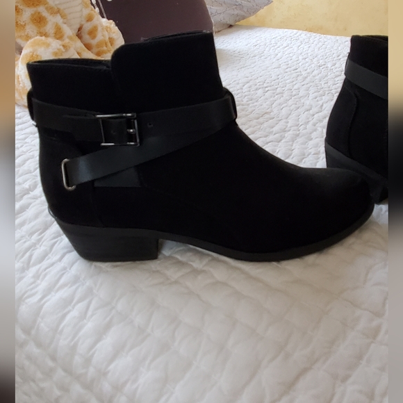 New booties. Black with buckle strap, suede.