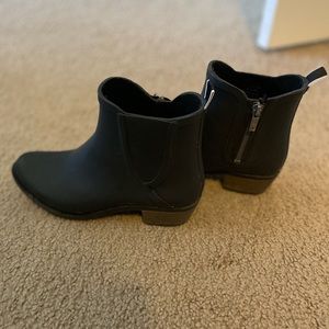 Lucky brand booties. Not worn much despite bottom looking worn out. Zipper works on both sides. 7.5. Rubber material so easy to clean.
