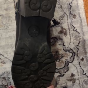 Sporto black booties (shoe boots) size 10. Suede with braid over instep with buckle and side zip. like new only worn once.