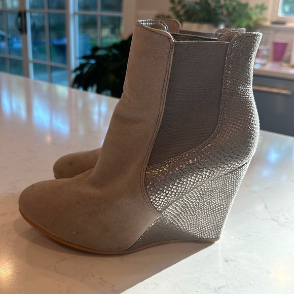 Grey suede booties. Size 8.5 Well worn
