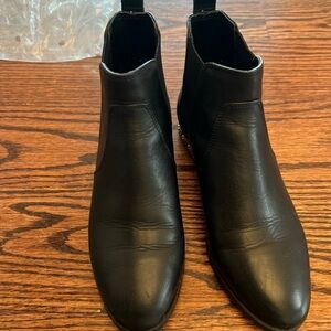 Karl Lagerfeld booties with chain detail on heel.