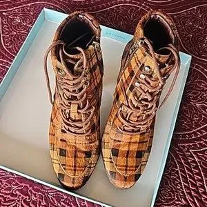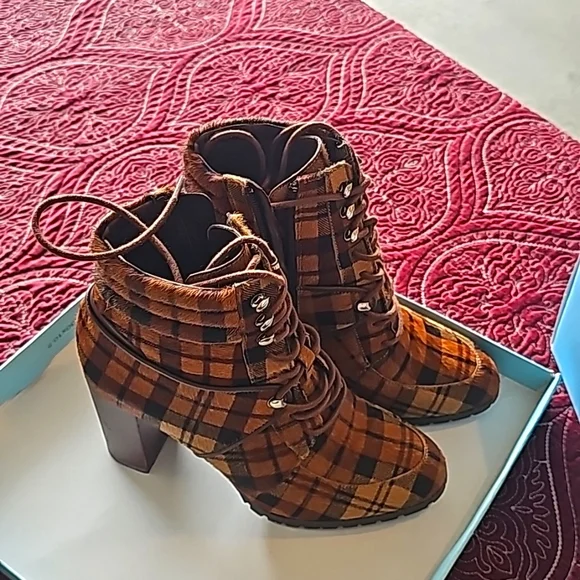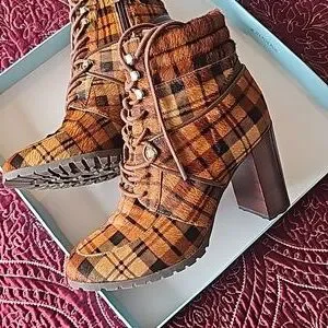 Cute some calf skin plaid booties like new 3 1/2 inch heels