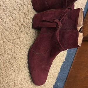 Burgundy suede ankle booties 2-3 inch block heel inner zipper lightly worn (2x)