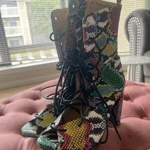 Multicolor snake look, tie up booties