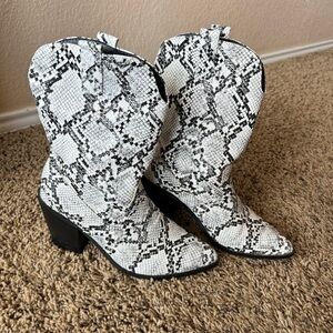 Faux snake print booties with heel. In great condition, only worn once.