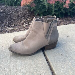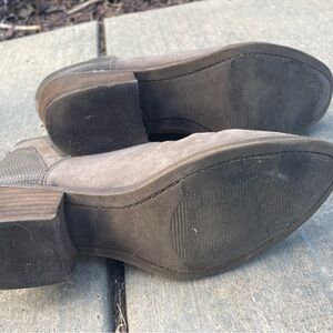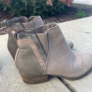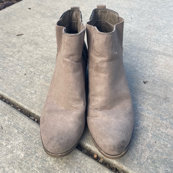 Taupe suede booties with small heel