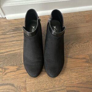 Black suede wedge booties. Great dressy shoe for the winter months. Only worn once. Excellent condition. Size women’s 8.5.