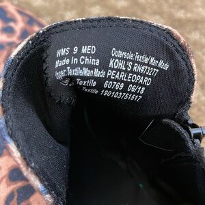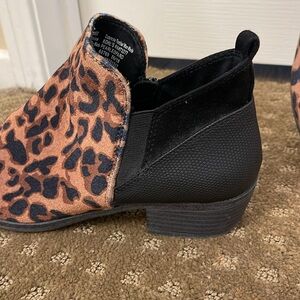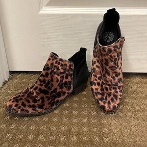 Leopard print ankle booties with black heel area. Worn once. Like brand new