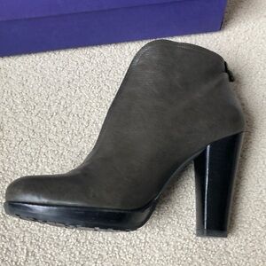 Elevate your style with these chic olive green ankle boots from Stuart Weitzman. Height of heal 4.25 inch with 1/2 inch front wedge.