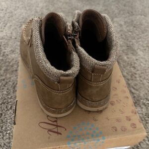 Size 7.5 brown booties, worn only twice. They're in great shape, coming from a smoke- and pet-free home.
