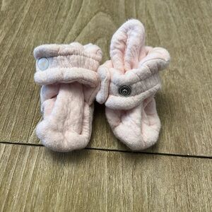 Light pink soft baby booties with snap strap. Worn a handful of times