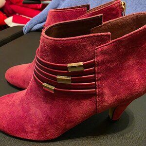 Bella-Vita ladies ankle booties. Genuine leather upper. Dark burnt orange color with gold decorative hardware. Size 9M.