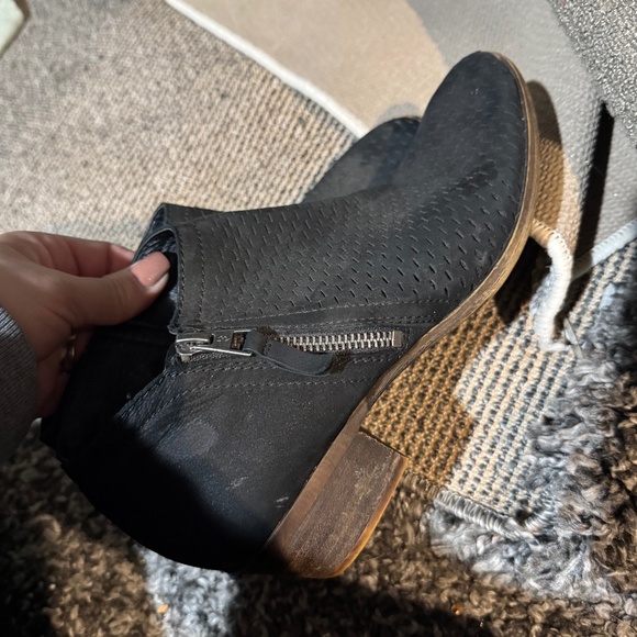 Super cute black booties with silver zipper can wear with jeans or dress pants looks good. Either way a smoke free home.