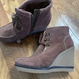 Cognac booties in suede leather