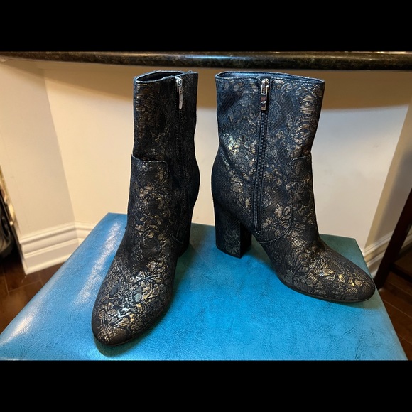 Fun black and gold booties with inside ankle zipper. Worn maybe twice. Perfect condition apart from a little walking scuff on bottom.