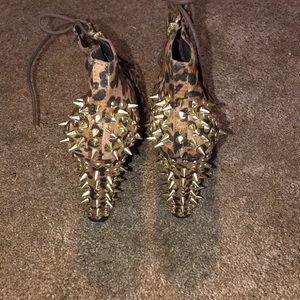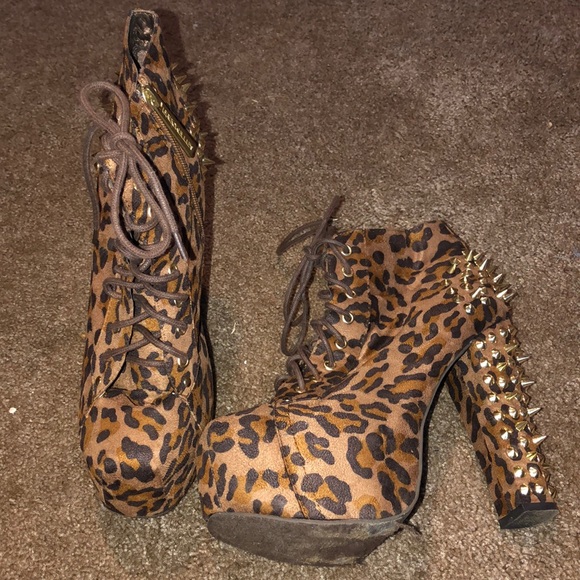 Spike leopard booties