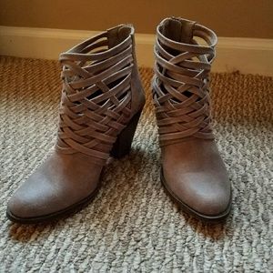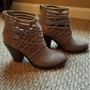 @julets I would say they are taupe. They are a brownish-gray. The brand is Fergalicious. Let me know if you have any other questions!