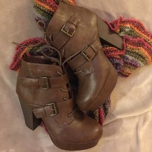 These booties are ready for fall! Brand new never worn Report booties. The perfect fall staple piece. Beautiful cognac color with a platform sole and wide heel.