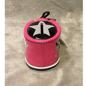 Bootiful Booties Collectible "Pink Rock Star" Bank by Giftcraft- NEW, W/TAGS. Cute bank features a detailed pink high top sneaker, with actual shoelace, coin slot on top, & rubber stopper. Made from a combo of ceramic & hard resin. Measures 5 1/4" across base, 3" across top, & is 3 1/8" in height. Tags still attached. Comes from a smoke free, pet free home.
