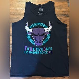 Bootleg streetwear tank top “F**k designer I’d rather rock J’s” 🐂