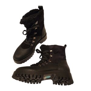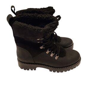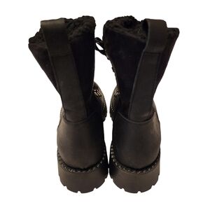 Bootlegger Black Leather & Sherpa Combat Winter Boots Size 8