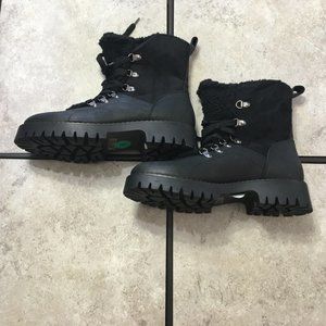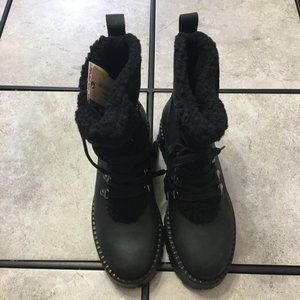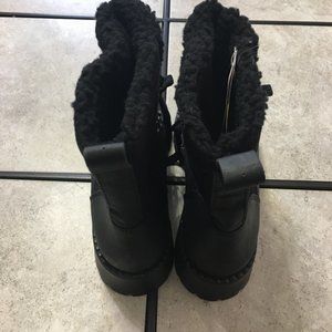 Bootlegger Black Leather and Sherpa Combat Boots Size 8 NWT