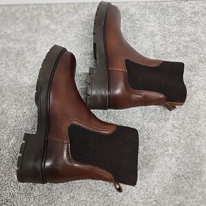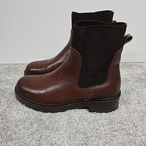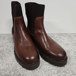 Bootlegger Leather Knit Ribbed Chelsea Boots Brown Women’s Size 39/ US 8