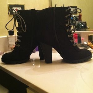 Black lace up boots with lace & black shoe laces! Worn Once to tight for me there in great shape!!