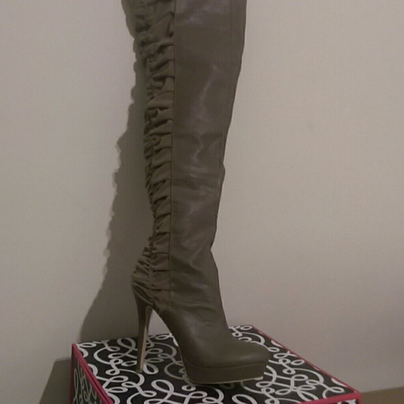 Putty colored, over the knee with ruched back, Never worn