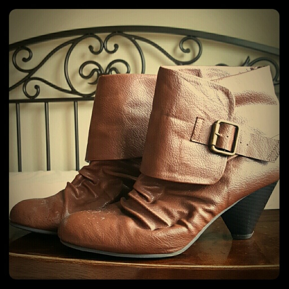 Brown booties with a little buckle and small heel. They are lightly worn with a few hardly noticeable scuff marks. Very cute and perfect for fall 🍂🍁