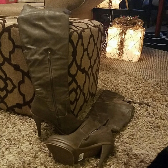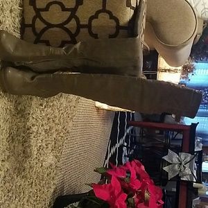 Taupe thigh high boot 3 inch heel size 8 new with tags worn just for fitting.