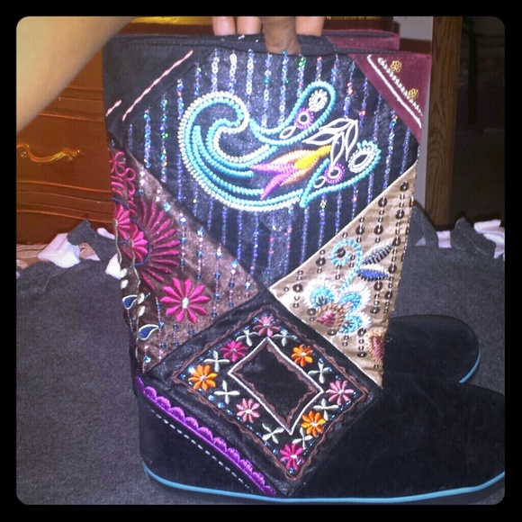 Pretty Indian design boots, size US 9, though it fits like an 8 1/2 (to me) . Lightly used because I couldn't fit them. Very cute!