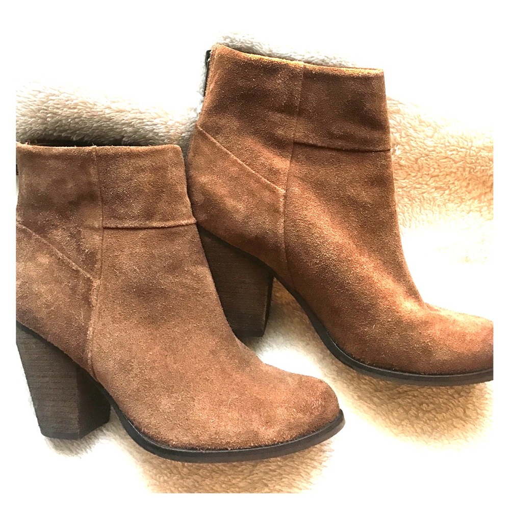 Arturo Chiang Booties, 3 1/2" heel, 4 1/2 boot shaft. Zip closure in the back. Very comfortable.