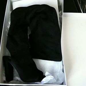 Thigh high open toe boots