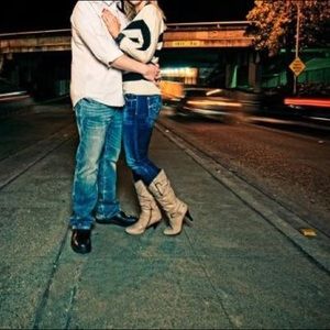 Cute, trendy tan/gray boots. Worn once, great condition. Size 10.