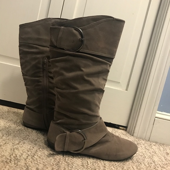 Dark Grey 8.5 mid-calf boots. Great for fall. Were received as a gift but were the wrong size. Have never been worn from Khols.