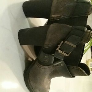 So very cool, love these! Worn twice. 3 inch heel. Crackled brown leather with bronze buckle. Von brand. Like new. Smoke free home.