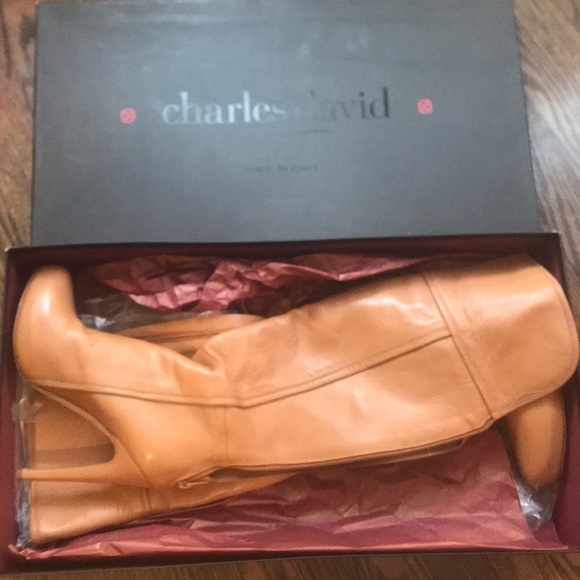Light brown over the knee boots, very high heel, but very comfortable because of platform. Almost new. Had to have brown boots for one occasion only!