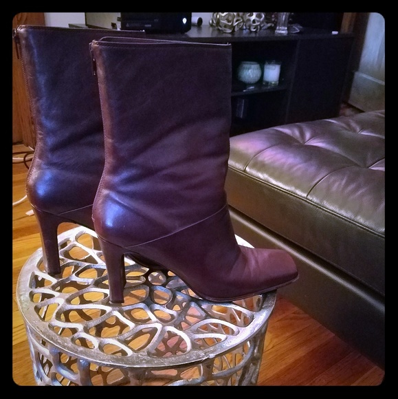 Leather short boots. In really good condition, but there is some wear on the heels.