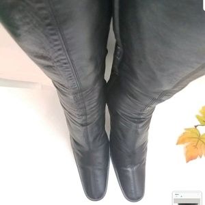 Black leather boots. Preowned in good condition. Minimal signs of wear..heel has minor scratches but boots are very nice