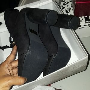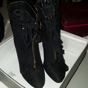 These are new never been worn only tried on. I have original shoe linen cover. These are suede heeled boots size 8 but fits more for size 7 in women's. Has ties it the front good with a dress, leggings or jeans.