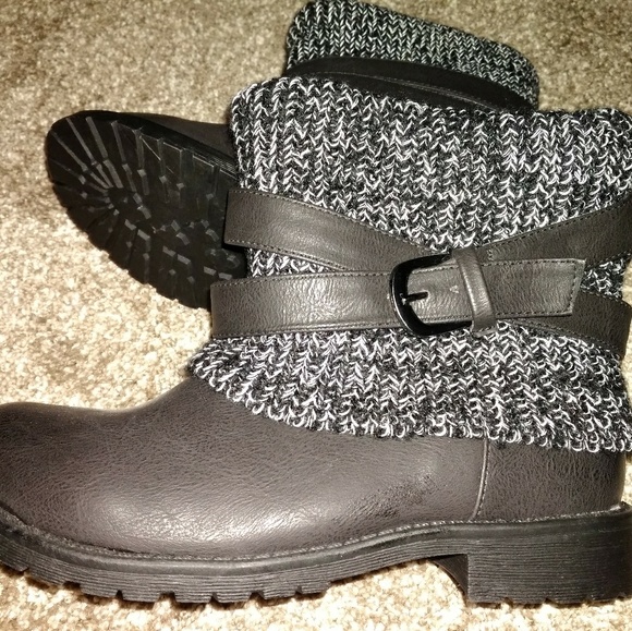 Cute black boots with sweater overlay. NWOT. Size 6