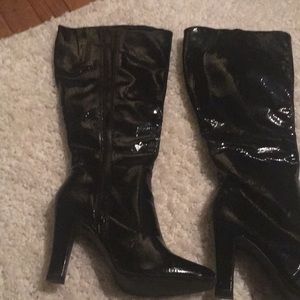 Black patent leather look boots. Side zipper.