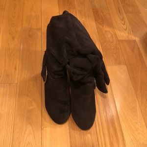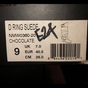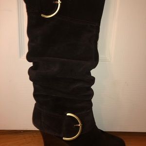 Dark Brown boots. Covers calf’s. If you have big calf’s you may not be able to pull them up. Zip inside, Worn with box, good condition.