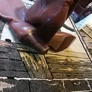 Tan in color in almost perfect condition a couple of stains on right boot ass shown with a few scratches otherwise there in perfect condition like new ass shown