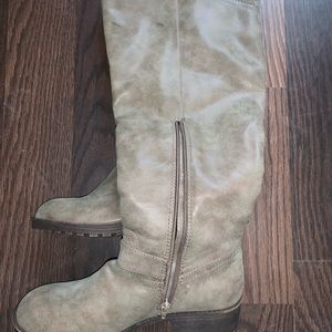 these boots have only been worn once or twice.. I’m 5.5 ft tall and they come up just about to my knee.. I’m just trying to make room for my new shoes