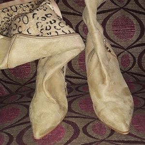 High heel %100 suede beige and cream with gold zipper andiente boot new condition size 10