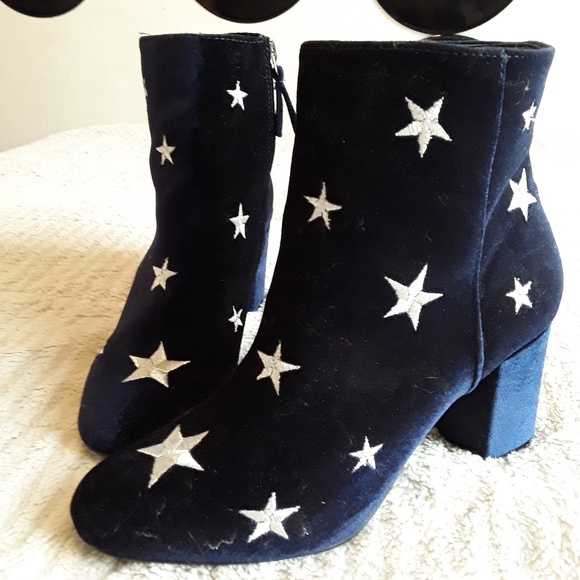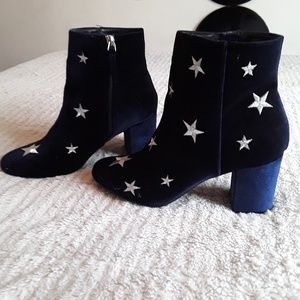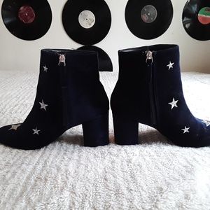Navy velvet boots. White stars. Very cute! Small 1 1/2 heel. Worn once.