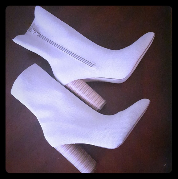 Cream, stretch, mid-calf boots. Size 7.5, Narrow. Worn once for a short while. Good condition, but are too narrow for me.