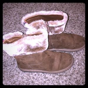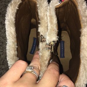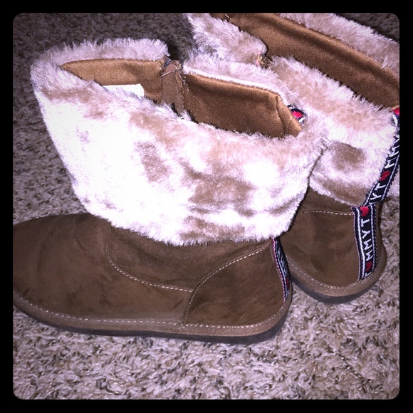 Brown with fur Tommy Hilfiger boots! Worn once! Excellent Condition!!! Tag says size 4 (women’s) but they fit my daughter who wears 7 1/2 Make an offer! Bundle and save!!!!